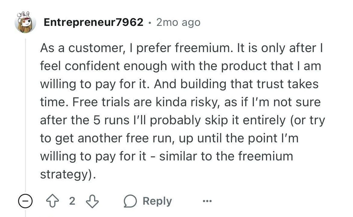 As shown above, some users get tired of limited trials, upsell prompts, and other aggressive freemium tactics. If your company relies on forceful pitching of paid services, it might lose users. Freemium offerings need to look valuable and respectful.
