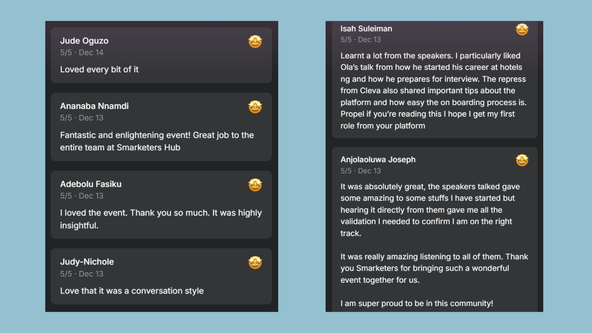 As part of our dedication to empowering African marketers within and beyond our community, the Smarketers Hub team hosted its annual end-of-year event on Friday, December 13, 2024, at 4 PM (WAT). The theme, Marketers on Marketers, focused on building strong and sustainable marketing careers for 2025.