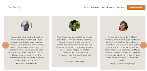 💡 Pro tip: Include CTAs that seamlessly ask for contact details. A good example is how at Smarketers Hub, some of the CTAs on our website direct incoming traffic to either join our community, subscribe to our newsletter or purchase one of our resources.